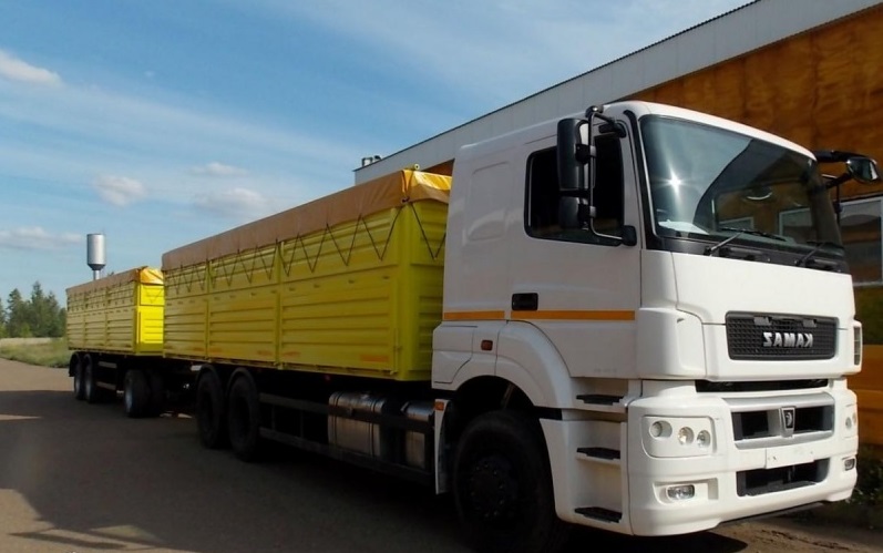Автомобиль-самосвал зерновоз на базе шасси КАМАЗ 65115 с прицепом.